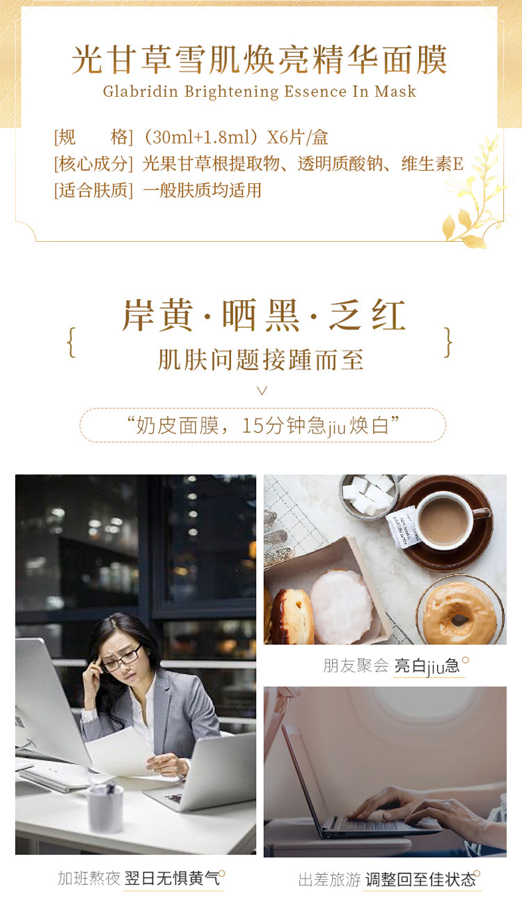 Mặt nạ sữa Gu Yu cho nữ dưỡng ẩm và dưỡng ẩm cam thảo Guangguo làm trắng và làm mờ vết ố vàng làm sáng và làm dịu da chính thức chính thức mặt nạ nhau thai cừu