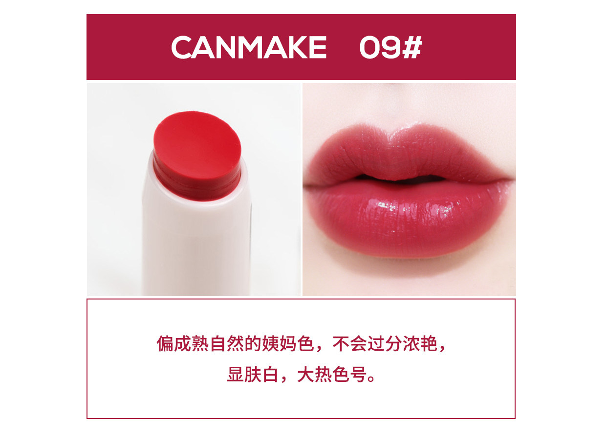 Phân loại màu: 16 # trà sữa quế (linh tinh Nhật Bản trong veo và nhẹ nhàng) 18 # sốt hồng trong suốt 19 # nhân đậu hồng (vị tuyệt hảo) 20 # đào bùi bùi (đa dạng của mùa xuân và mùa hè) T04 kem sô cô la (cảm giác ấm nóng sun) cam bột mật ong T05 (cam đào siêu dịu) 02 cam ngọt ngào (sắc thái tươi tắn và nữ tính của Nhật) 03 đỏ anh đào (kiểu all-match không kén màu da) 06 kem mơ (tone cam nhạt dịu nhẹ) 09 hạt tiêu nhỏ (bùng nổ thím Màu hiển thị da trắng) 10 # màu hồng san hô (dịu dàng và trắng) 12 màu đỏ san hô (lớp phủ mỏng dày và sống động) 13 kem dâu (cô gái hoa anh đào Nhật Bản) 14 màu đỏ cam (da vàng cũng phù hợp) 15 màu đỏ đậm (cũng có thể tô mà không cần trang điểm Màu nâng) T01 đỏ cam máu (khỏe và tươi sáng) T02 bột màu vui tươi (hồng và hồng nhạt) T03 mận tươi (không đậm nhưng dùng hàng ngày)